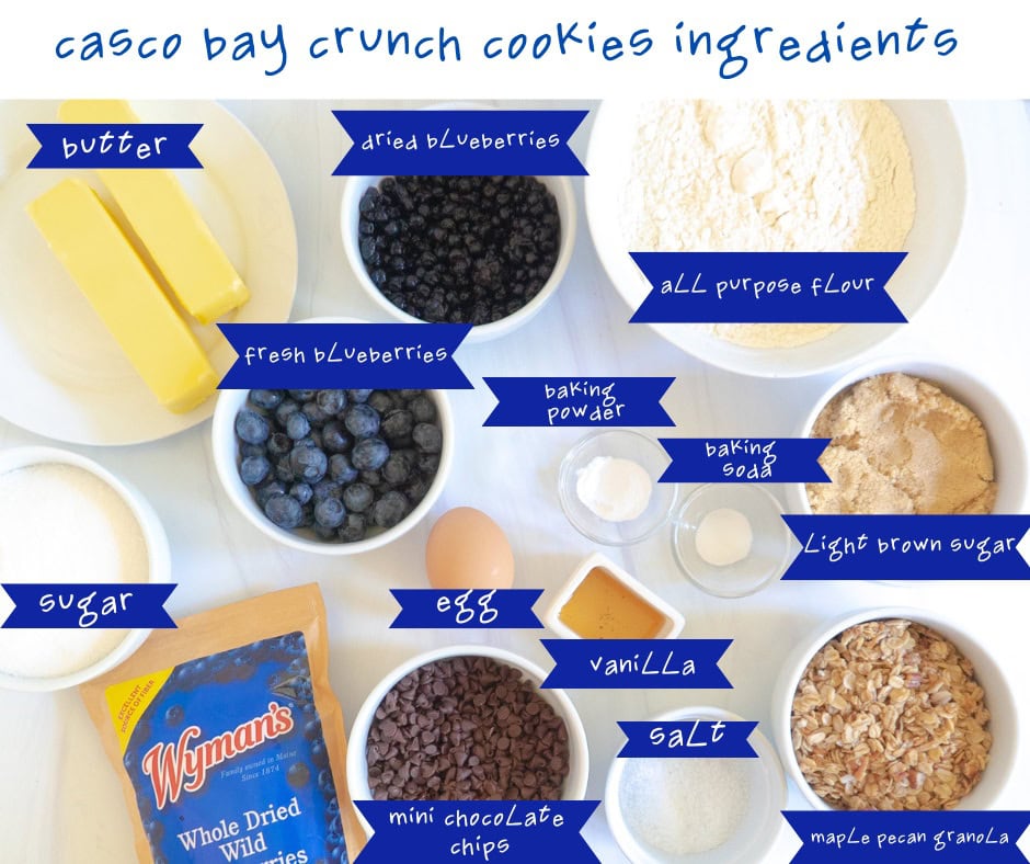 Wild Maine blueberries are much tinier than typical blueberries and provide little micro bursts of sweet flavor. They are glorious for making blueberry pies, pancakes, crisps and cobblers. Grocery stores sell them in extra large cartons for just a few coveted weeks and the demand most definitely exceeds the supply. Needless to say blueberries were a must for this cookie.