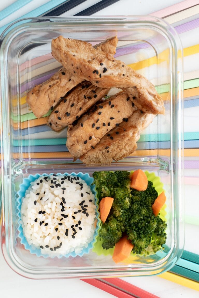 Part of our Back to School Protein Series, this Teriyaki Chicken Bento Box is an easy, nutritious, and kid-friendly lunch. Juicy chicken glazed in a flavorful sauce pairs perfectly with rice and steamed broccoli for a protein-packed meal that’s quick to prep and fun to eat.