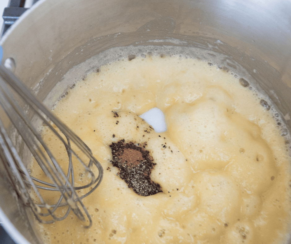 - Whisk in salt, pepper, and nutmeg (if using).