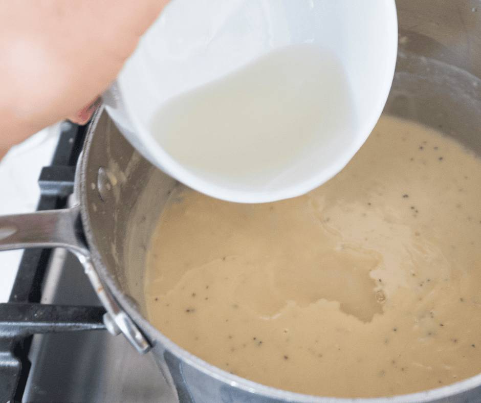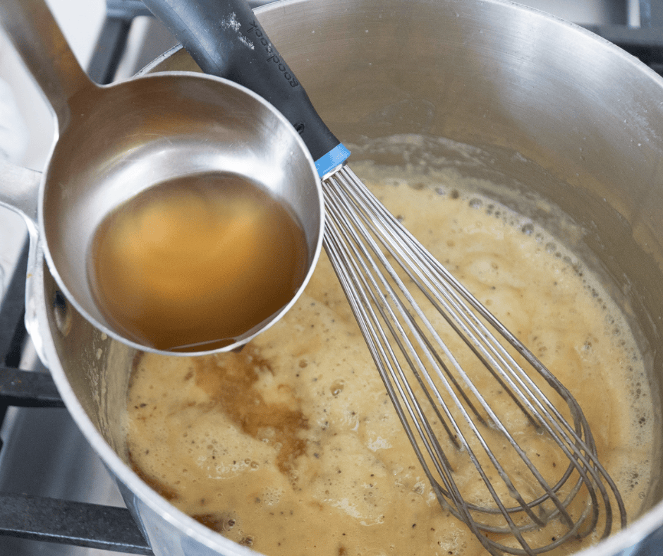 - Slowly whisk in chicken broth until smooth.