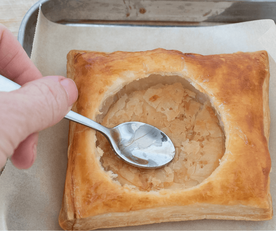 - Once baked, gently press down the scored center to create a well.