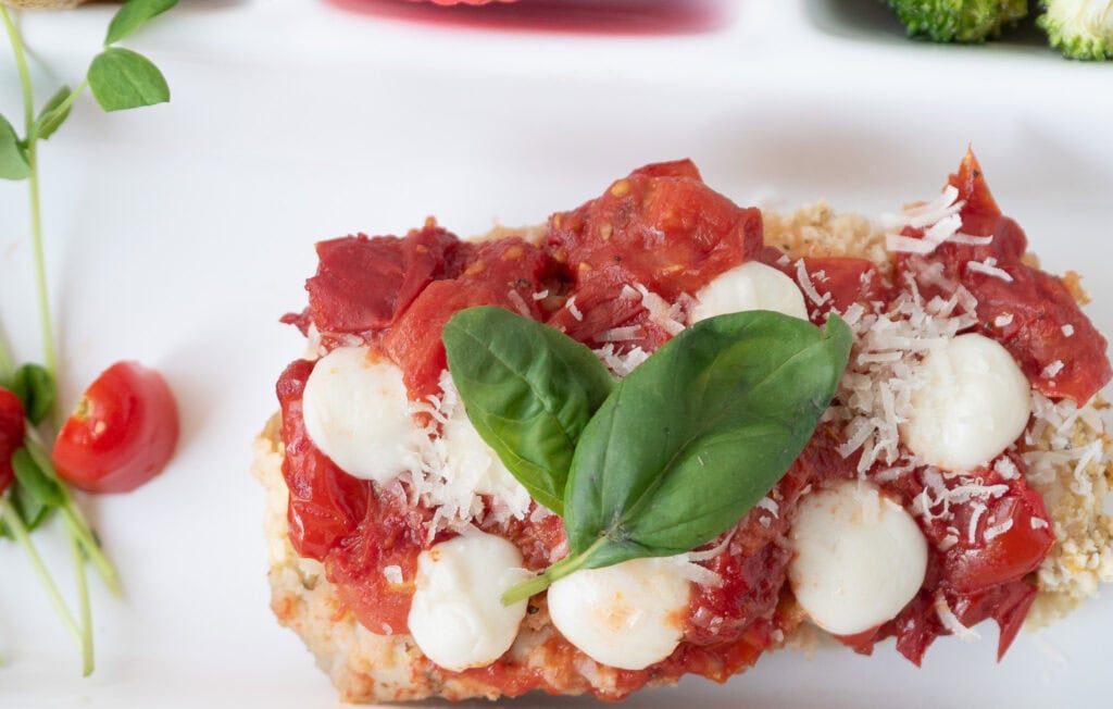 This crispy chicken parm starts with a light panko coating that bakes into a golden crust — no frying, no mess.