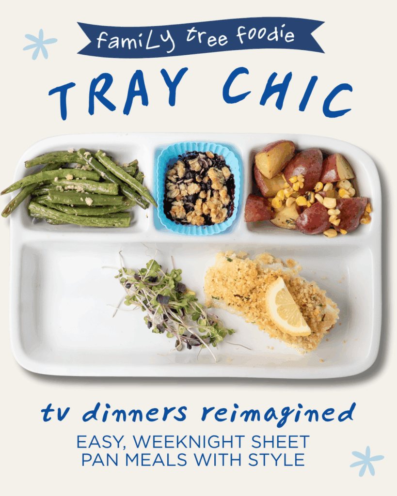 TRAY CHIC is my modern love letter to that era—an ongoing series of easy, seasonal, and nostalgic recipes served on divided sheet pans, blending comfort food charm with fresh, flavorful style.