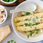 Scrippelle ‘Mbusse (Italian crepes in broth) is an elegant, delicate soup that is simple, comforting, and full of flavor. Thin crepes, sprinkled with grated Pecorino Romano, are rolled, placed in a bowl, and soaked in rich, homemade chicken broth. As the broth seeps in, the crepes soften and becoming even more flavorful — a cozy, old-world dish from Italy’s Abruzzi region that turns simple ingredients into something unforgettable.