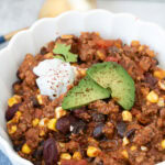 Smoky Turkey Chili with bacon and a hint of dark chocolate is a rich, hearty twist on classic chili. Made with lean ground turkey, warming spices, tender beans, and subtle sweetness from corn, this deeply flavorful chili is perfect for game day, cozy dinners, or make-ahead meals.